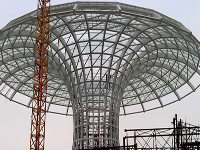二、球形网架结构因其结构新颖,受力合理,自重轻、用钢量低等优点。如大型体育场馆球形晋城螺栓球网架、公共场馆球形网架、电厂晋城螺栓球网架、水泥工业球形网架、仓储物流球形网架、晋城干煤棚工业球形网架、晋城收费站晋城加油站球形网架、展览中心、影剧院、商场、航站楼、候车厅、工厂晋城车间、仓库、电视塔等球形螺栓球节点网架。国内球形网架结构主要分为:晋城焊接球节点网架及螺栓球节点网架两种。螺栓球节点网架其构件工厂内加工量较大,现场安装便捷,适用于现场工期紧,晋城施工条件、用电量受制约,网架形状复杂、晋城杆件定位困难的异形结构。螺栓球节点球形网架系统基本由晋城杆件、螺栓球、支撑支座等组成。按照节点形式可分为交叉晋城桁架体系、四角锥体系、三角锥体系等。支撑方式多为固定支座支撑。对于大面积、大跨度及有特殊受力或伸缩要求的网架结构可采用橡胶支座、滑移支座、球铰支座等支撑形式,以满足结构自身的受力稳定、均衡,便于内力释放等设计要求。